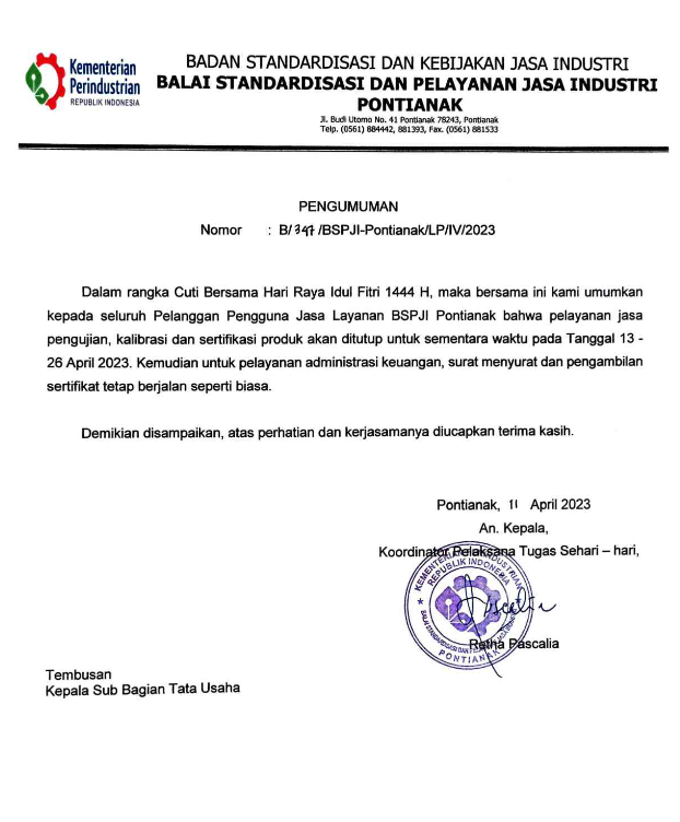 Balai Standardisasi dan Pelayanan Jasa Industri Pontianak (BSPJI)